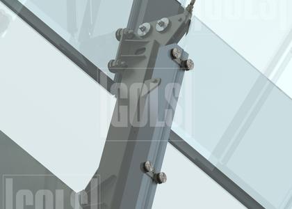Mezgls MM.JL4x (MM.JL4xA) fasādes stikla stiprināšanas sistēmā GOLS MM. Spēka mezgls savieno ārējos jumta stikla paketes ar jumta kapitālo konstrukciju, veidojot stabilu un stingru struktūru. Mezgls uztver visas slodzes no jumta stikla paketēm. Mezgls MM.JL4x (MM.JL4xA) ir precīzi izgatavots, darbojas kā elements, kas veido jumta konstrukciju. Mezglā MM.JL4x (MM.JL4xA) tiek izmantoti jaudīgi stikla turētāji PuzN40M12k, kas tiek ielīmēti starp stikla paketes stikliem laminēšanas procesā. Mezglu konstrukcija ļauj droši nostiprināt visas fasādes stikla detaļas bez slīdēšanas un bojājumiem.