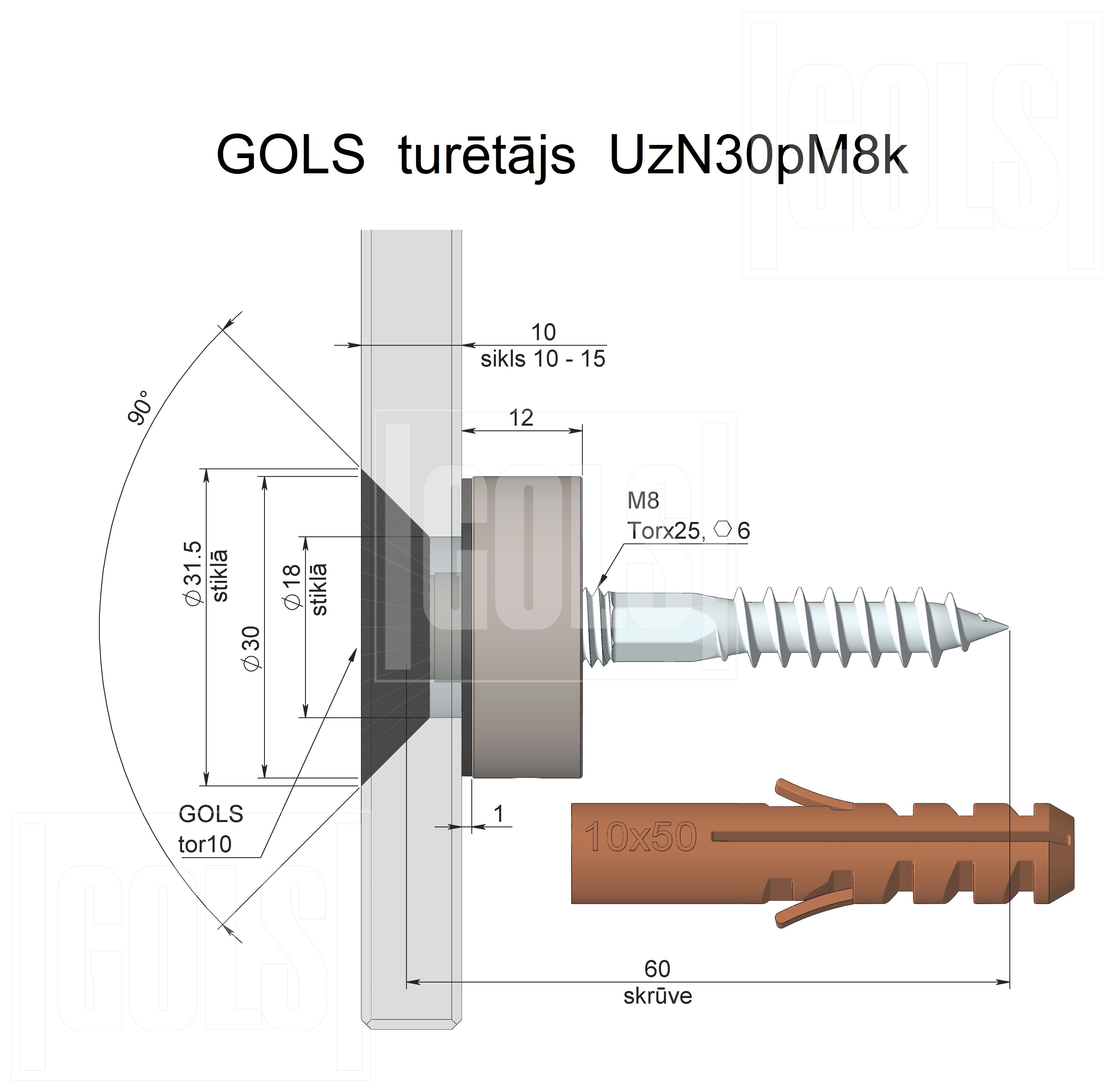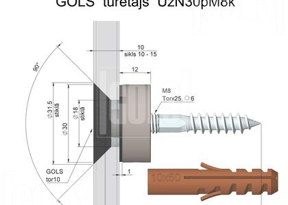 Turētāja pieļaujamā slodze (šķērseniskā - līdz 25 kg., aksiālā – līdz 35 kg.) ir ierobežota ar stiprinājuma stiprību pamatnē (labāk metālā un betonā). Ģipša virsmām izmantojiet īpašus plastmasas dībeļus, lai nodrošinātu lielāku stiprinājuma uzticamību. Sejas uzgrieznis tiek pievilkts ar instrumentu GOLS tor10.