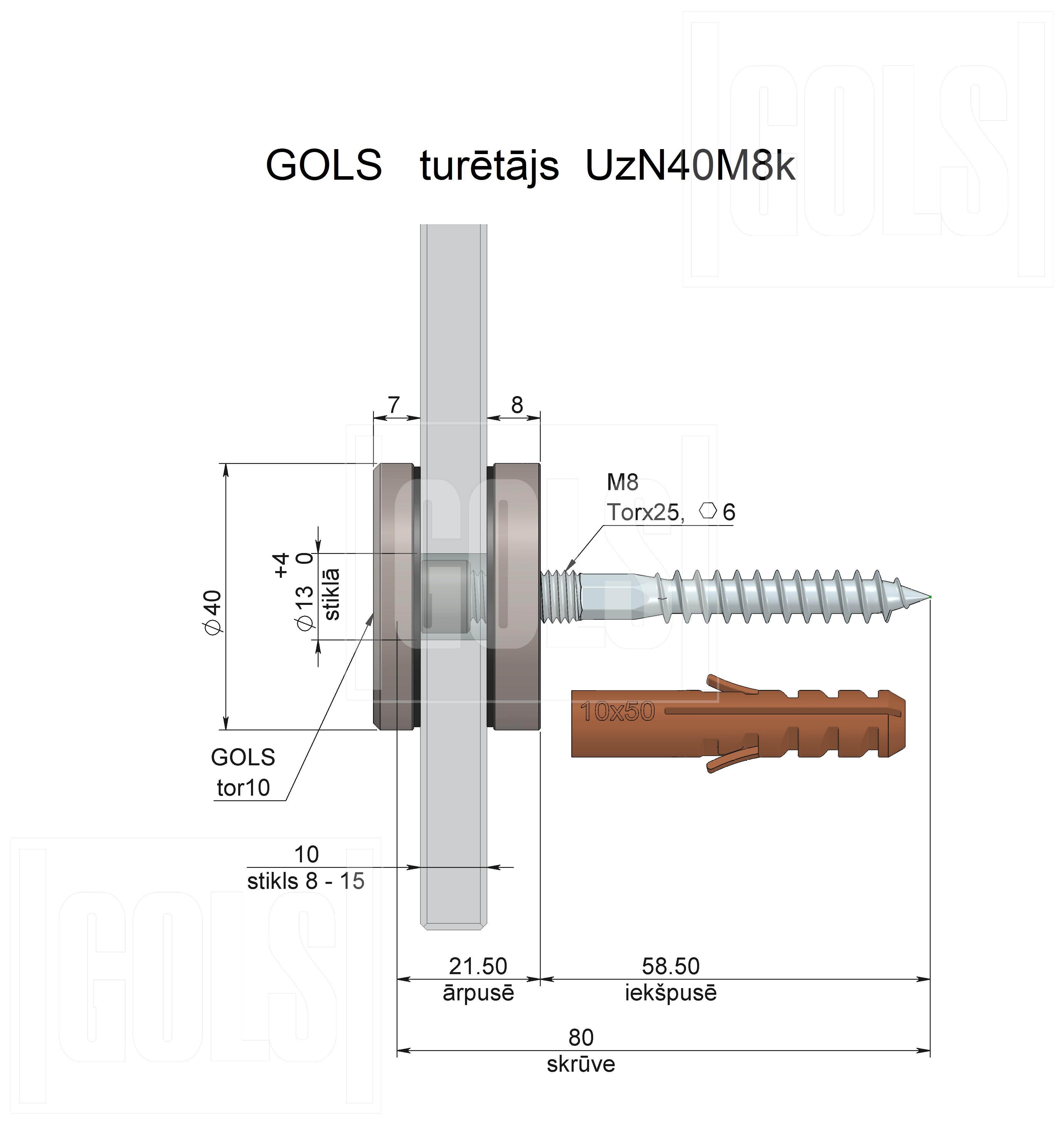 Turētāja pieļaujamā slodze (šķērseniskā - līdz 25 kg., aksiālā – līdz 50 kg.) ir ierobežota ar stiprinājuma stiprību pamatnē (labāk metālā un betonā). Ģipša virsmām izmantojiet īpašus plastmasas dībeļus, lai nodrošinātu lielāku stiprinājuma uzticamību. Sejas uzgrieznis tiek pievilkts ar instrumentu GOLS tor10.